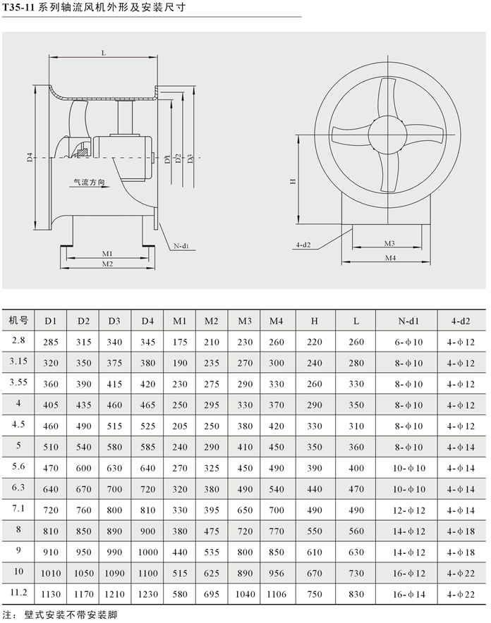 FT35-11和BT35-11型通風機的性能參數外形尺寸及其注意事項都可同T35-11一樣。