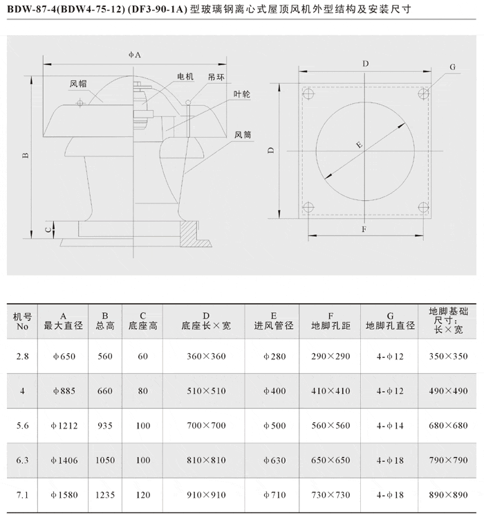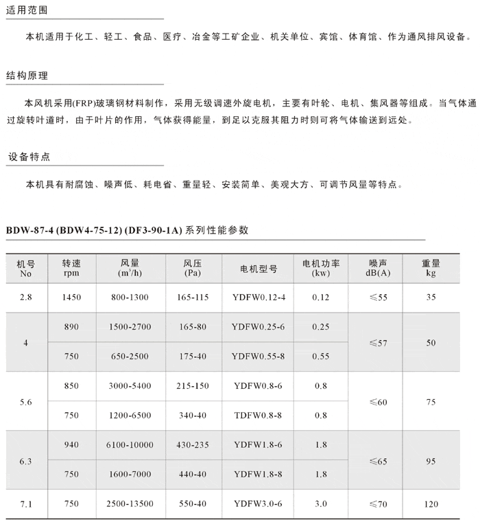 BDW-87-4型玻璃鋼離心式屋頂風機