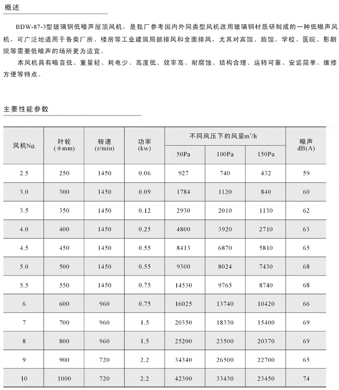 BDW-87-3型玻璃鋼低噪聲屋頂軸流風機