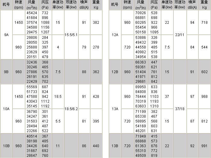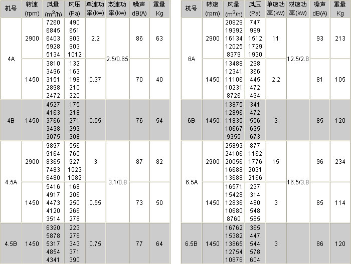 機號:2#-8# 風量:200-25000m3/h 全壓:54-1200Pa
